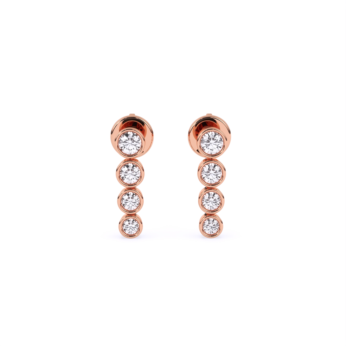0 StoneThese round linear bar studs are a modern take on everyday diamond earrings, with five bezel-set round lab grown diamonds cascading in a sleek vertical line of solid gold. Set with lab grown diamonds in 9K/14K/18K yellow, white and rose gold, they offer a conflict-free, planet-conscious alternative to mined diamonds while giving a clean, polished shimmer. The slim profile sits comfortably on the ear without snagging, making them perfect for daily wear, office meetings, brunch plans or layered in a second piercing for evening looks. Designed for modern women who love subtle, structured sparkle, this pair is an easy go-to you’ll reach for every day.