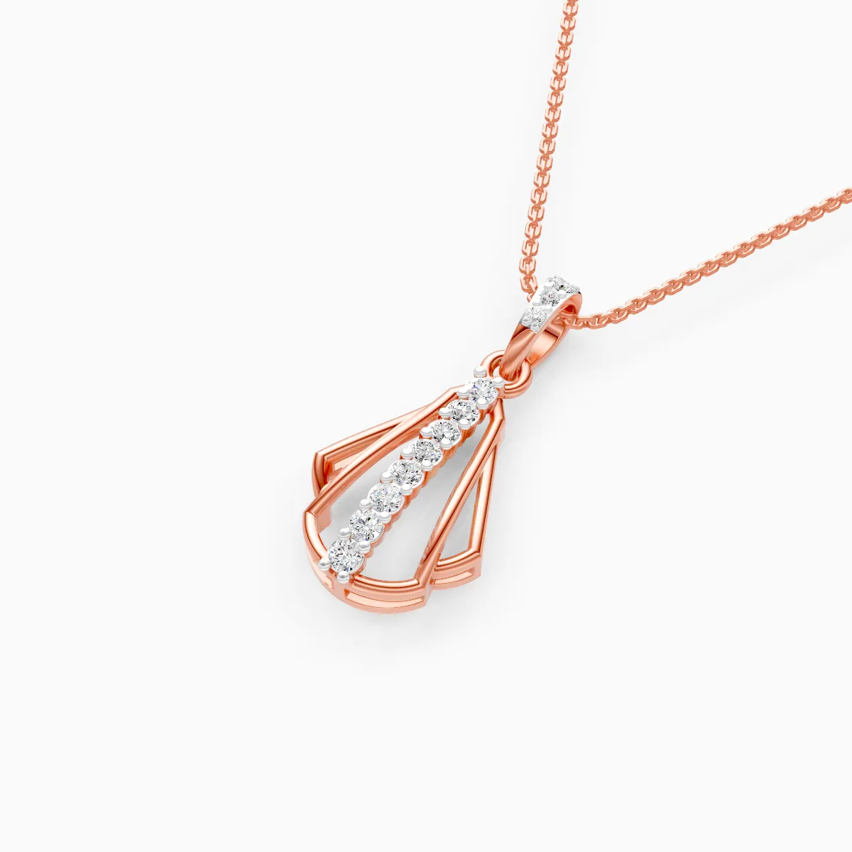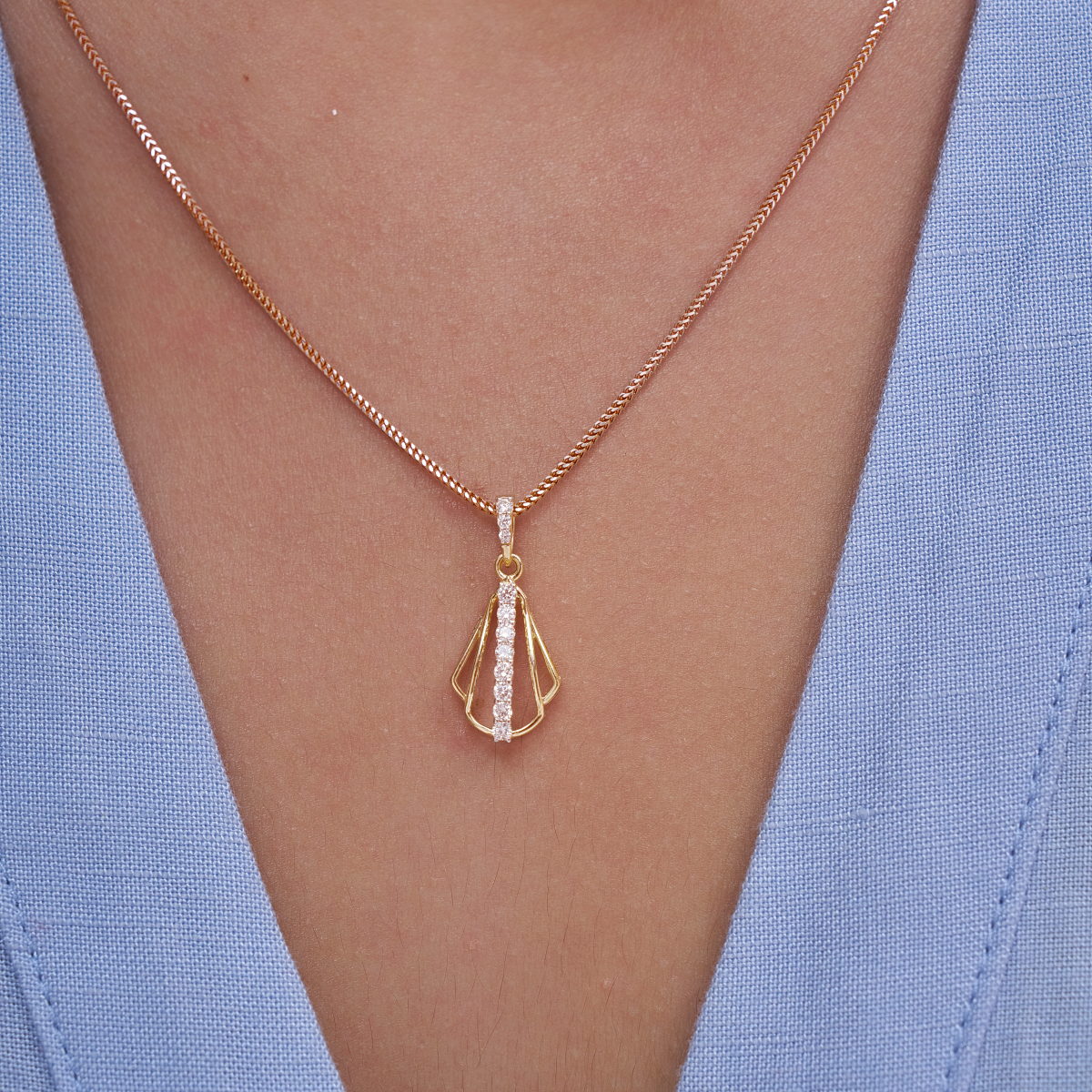 0 StoneThis modern geometric drop pendant is designed with a sleek open-frame silhouette accented by a vertical line of round lab-grown diamonds, creating a refined balance of structure and sparkle. Set with lab-grown round diamonds in 9K/14K/18K yellow, white, and rose gold, it offers a conscious, conflict-free alternative to mined diamonds while maintaining everyday elegance. Lightweight and comfortable against the skin, this pendant sits gracefully on the neckline, making it ideal for modern women who appreciate minimal yet distinctive jewelry. Effortlessly versatile, it transitions seamlessly from office wear to brunches, date nights, and understated evening occasions, becoming a signature piece for everyday sophistication.