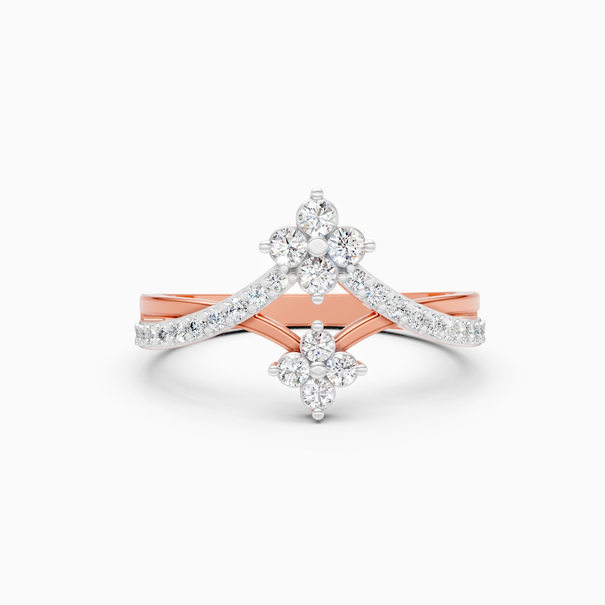 0 StoneA delicate floral crossover diamond ring crafted in solid 9K/14K/18K yellow, white or rose gold, this design features two petite flower clusters of round lab-grown diamonds that sit lightly across a graceful criss-cross band. The open silhouette keeps it airy and comfortable on the finger, making it perfect for modern women who love a touch of sparkle they can wear all day—from office meetings to coffee dates and evenings out. Thoughtfully set with conflict-free, planet-conscious lab-grown diamonds, this ring brings a refined, feminine shimmer that layers beautifully with other bands yet is striking enough to be your everyday signature piece.